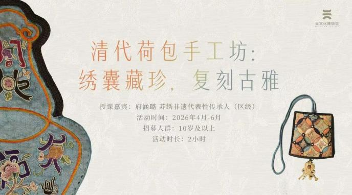 荷包作为清代最具代表性的随身配饰,兼具储物、装饰与寓意功能,是身份地位与审美情趣的直观体现。本次手工坊将模拟清代荷包的经典形制——圆形、方形、如意形等,精选与古物同源的面料、织金锦缎,搭配传统配饰,再现“锦囊绣绮罗”的精致格调。参与者将在迷你荷包上完成刺绣与收口工艺,亲手绣制吉祥纹样,沉浸式感受清代匠人“一针一线皆匠心”的造物哲学。完成的荷包既可作为随身佩饰,亦能成为承载清代生活美学的收藏之物,让古雅韵味融入当下生活。