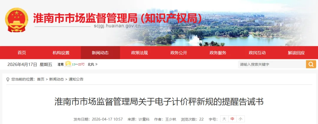 原标题:《事关电子计价秤,淮南市市场监督管理局最新发布!》