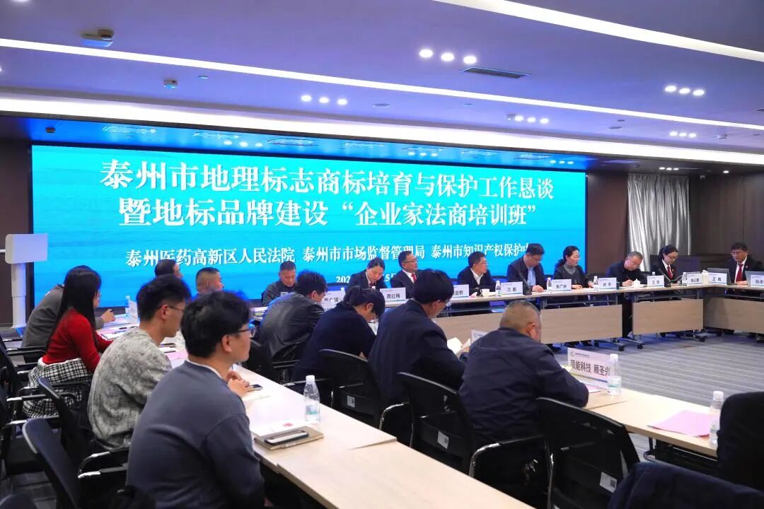 泰州市地理标志商标培育与保护工作恳谈暨地标品牌建设“法商培训班”活动成功举办。本次活动由泰州市市场监管局、医药高新区法院、市知识产权保护中心联合主办,旨在凝聚共识、汇聚合力,共同做强泰州农产品与食品特色产业,提升地理标志商标核心竞争力。市中院、市市场监管局、医药高新区法院、市知识产权保护中心相关领导及部门负责人,以及全市核心地标商标协会、企业代表参与此次活动。