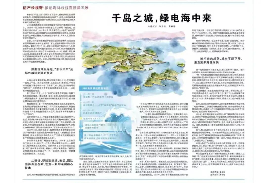4月15日,由民革党员、杭州林东新能源科技股份有限公司董事长林东担任总工程师的LHD海洋发电项目亮相《人民日报》。全文如下: