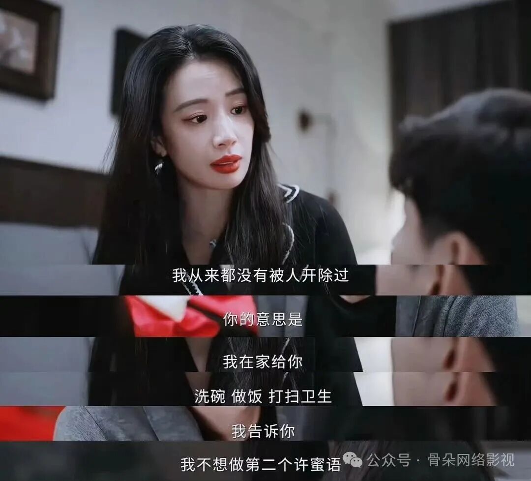 但《蜜语纪》并没有沿着纯爽剧的路子往下走,让许蜜语在离婚后火速逆袭,马不停蹄打脸前夫和小三,而是把她面临的窘迫现况也不留情面地呈现了出来。一夕之间阔太变保洁看似不可能,但联系一下现实中有大把35岁被裁找不到工作的人,更何况职场经验为零的许蜜语,再加上她没有原生家庭托底,又被中介骗了钱,那么包吃包住还和酒店行业相关的保洁,便是她目前的最佳选择了。可见剧集最大的噱头也绝不只是为了抓马而抓马,而是有真实逻辑依托。
