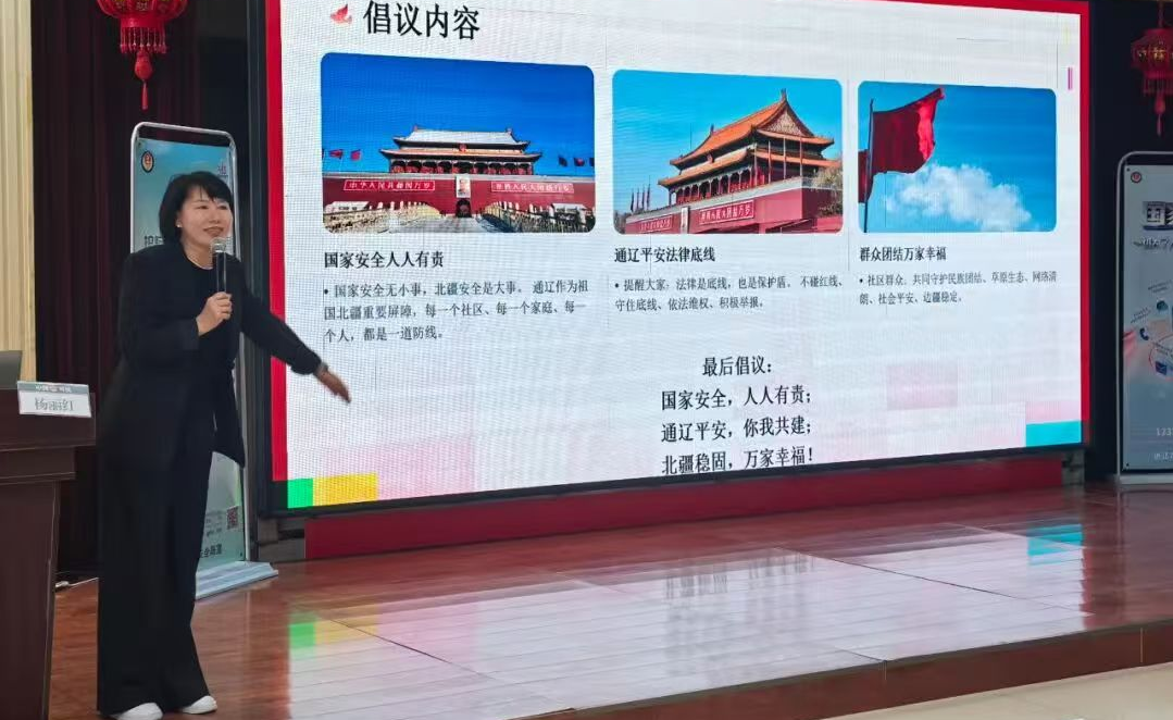 呼伦贝尔市市旗两级国安办、国家安全局、司法局等部门单位深入鄂温克族自治旗团结嘎查开展活动,现场“法律明白人”分享维护国家安全的普法实践,200余名干部职工群众参加活动;通辽市司法局联合多部门走进团结社区,特邀通辽职业学院副教授围绕国家安全作专题宣讲,现场向居民发放宣传资料及宣传品5000余份;乌兰察布市走进高校捐赠法治书籍,就维护国家秘密和密码安全开展主题讲座;包头市司法局、内蒙古交通集团在G6高速沙尔沁停车区举办“北疆万里法治路”法律宣讲及“送法上车”活动,走进边防部队营区开展法律宣讲及“法治乌兰牧骑”慰问演出。锡林郭勒盟将法治讲堂搬进“护边驿站”,将国家安全教育延伸到边境一线。