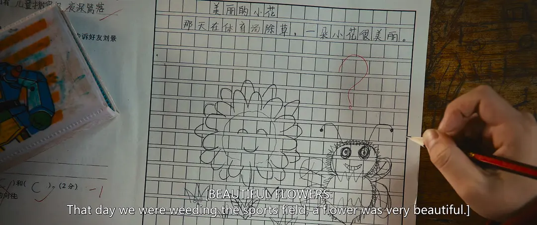 片中有一段学生们写作文的情节。