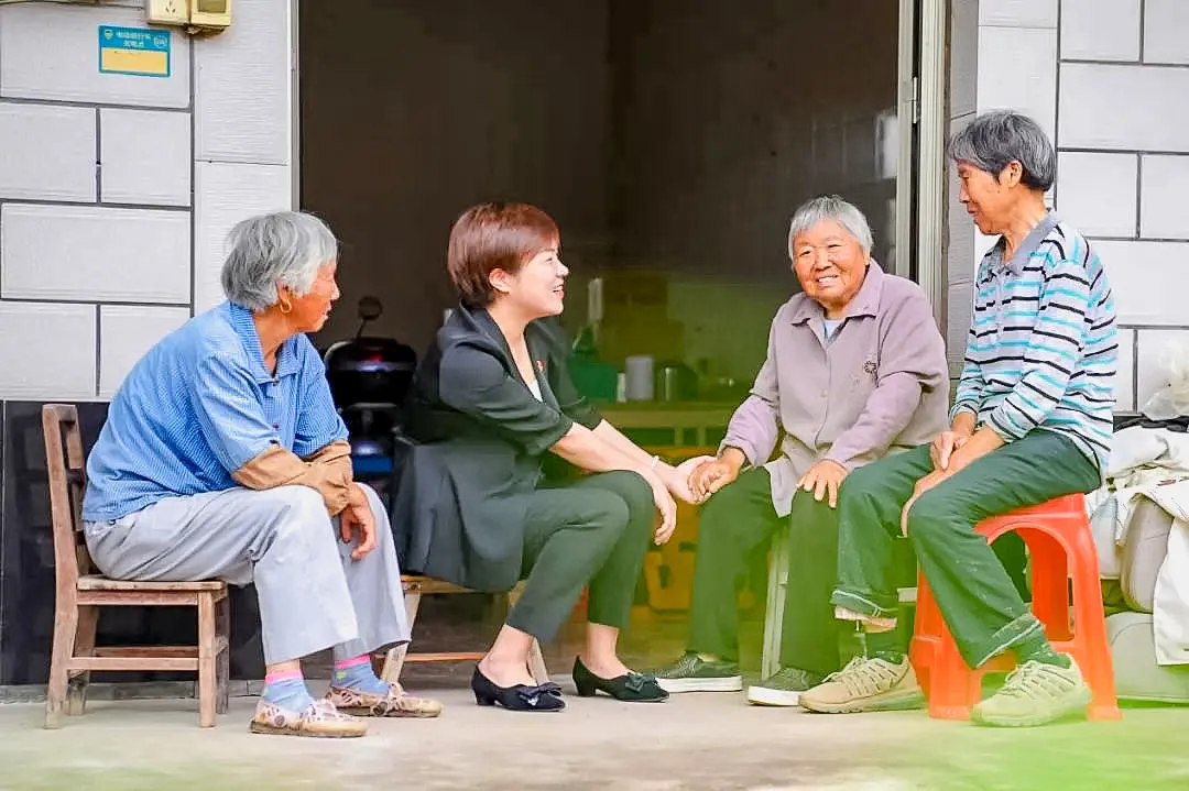 陈天燕(左二)和村里的老人们拉家常
