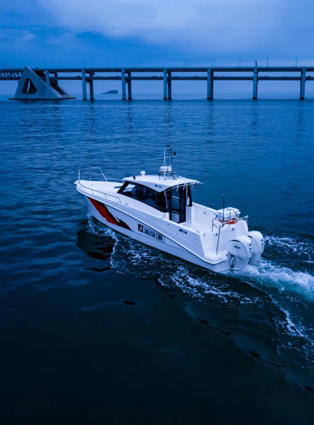 沃德-旗鱼(sailfish)系列S388钓鱼艇,总长11.6米,搭配3米宽船体,兼具出众适航性与稳定性。船体采用高端真空吸附工艺,轻量化却更坚固,耐腐蚀、抗损耗;驾驶舱与甲板一体成型,无缝无裂,细节尽显精致;更独家增设双层乙烯基防水涂层,双重防护。