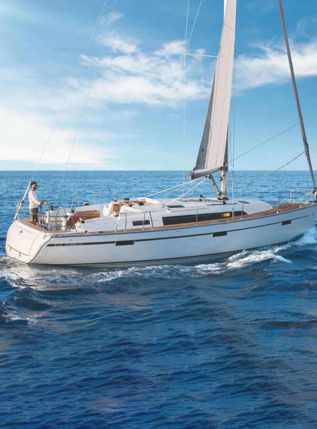 巴伐利亚CRUISER 41,40尺级别的经典巡航帆船,全长12.35米,船宽3.96米,德系精工,水滴形船体、双倍数量的不锈钢龙骨螺栓、近三分之一船重的龙骨,在风浪中为你撑起稳稳的安心。双舵轮设计,缭绳系统集中导引至驾驶舱,一个人也能从容掌舵。