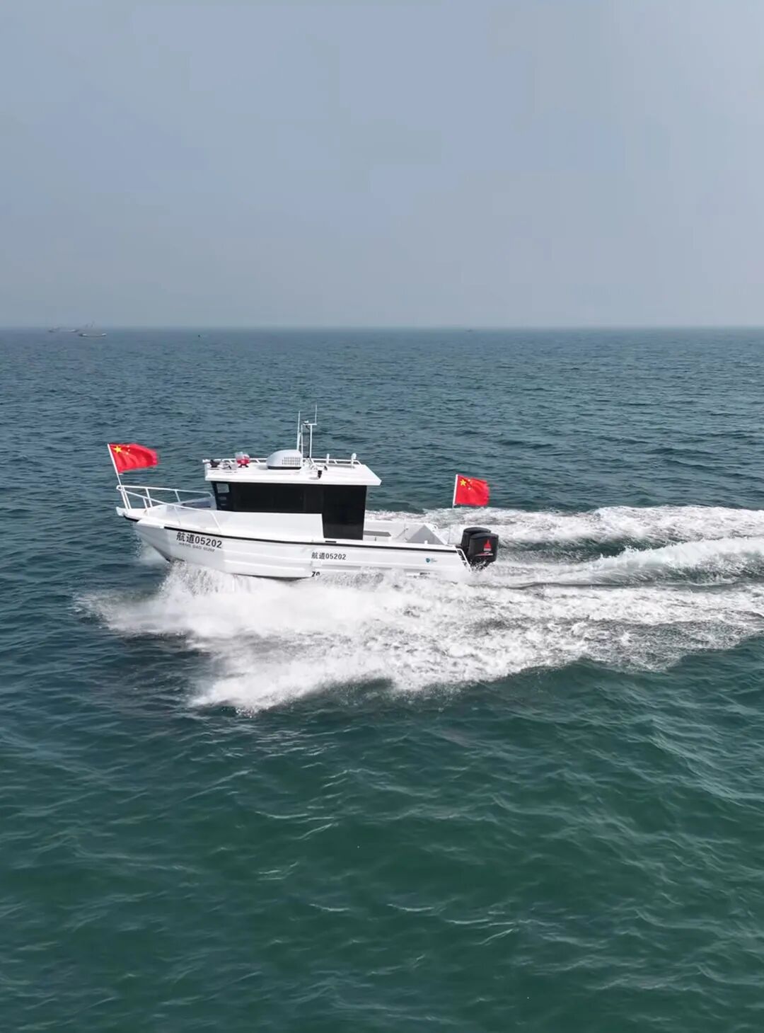 大禹船业全球首发820型游钓艇,8.2米长、2.6米宽的宽体设计,自重仅2吨,搭载225匹单机,并已通过中国船级社(CCS)等多项权威认证,可广泛用于渔业生产、海上交通及休闲接待。