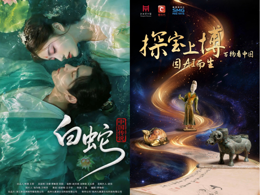 文博题材AI短剧《探宝上博·百物看中国——因AI而生》呈现了上海博物馆50件馆藏瑰宝,春节期间在东方卫视播出7集,全国收视率均进入同时段地方卫视节目前三,在上海本地平均收视率0.755%、收视份额12.248%。