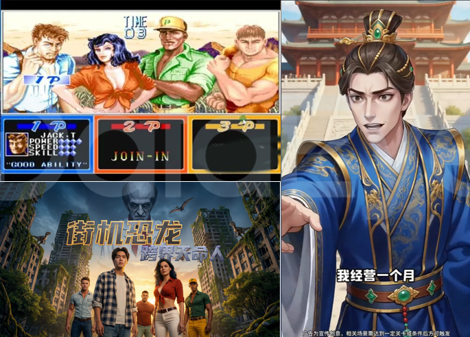 年初,游戏厂商吉比特在TikTok推出了西方奇幻题材的AI仿真人剧《Sea God》(海神);2月中旬,草花互动上线了AI短剧《街机恐龙:跨界天命人》;三七互娱近期上线的古风模拟经营游戏《大店小二》也投放了不少AI短剧素材,在剧情上紧扣“穿越逆袭”的主题,以此吸引用户眼球。