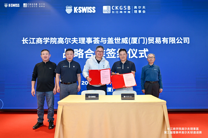 K·SWISS品牌与长江商学院高尔夫理事荟正式达成 2026—2028年度战略合作,独家冠名 “长江商学院高尔夫球联赛”和“长江商学院高尔夫球超级联赛”。签约仪式与长江商学院高尔夫理事荟2026年度理事大会暨第三届理事杯高尔夫球邀请赛同步举办,长江商学院院长李海涛、长江商学院EMBA项目及校友事务高级副院长阎爱民、长江商学院高尔夫理事荟召集人尤东云、特步集团董事局主席兼CEO丁水波、KSGB环球CEO(兼中国盖世威事业部总经理)梁夏準以及百余位商界精英校友共同见证这一里程碑时刻。