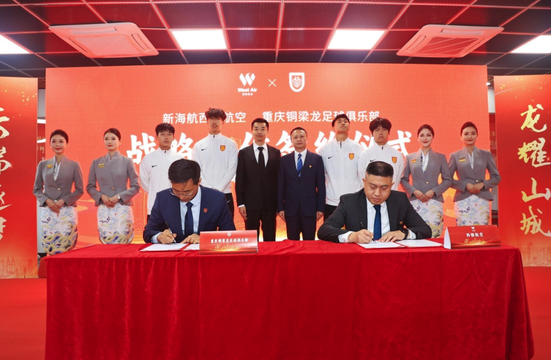 4月15日消息,新海航西部航空与重庆铜梁龙足球俱乐部日前在西部航空生产基地签署战略合作协议。双方将携手开启“航空+体育”跨界联动新篇章,依托西部航空覆盖国内外60余座城市的航线网络与出行保障优势,结合铜梁龙足球俱乐部的体育IP影响力,双方将在球队客场出行保障、品牌联合推广等领域深化合作,挖掘重庆本土航空与体育融合的文化价值,以实际行动助力体育强市建设,并肩征战中超新赛季。