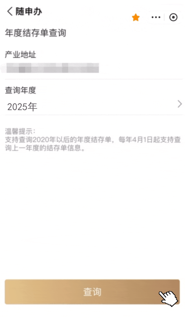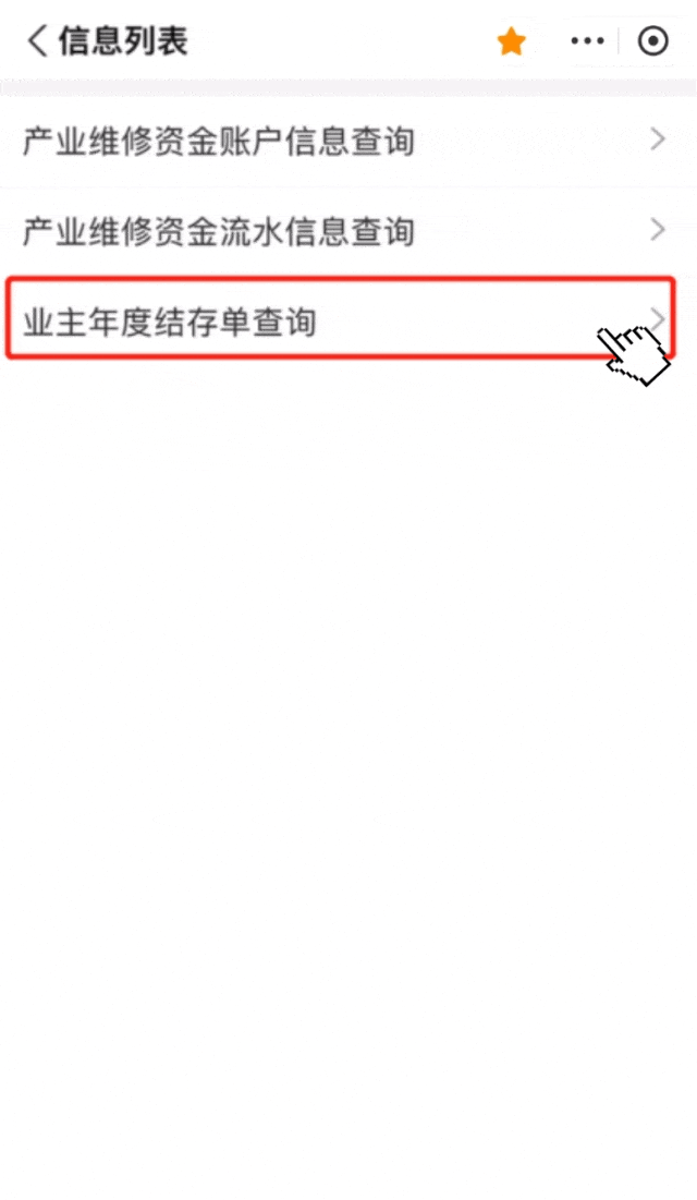 2、选择“业主年度结存单查询”服务,选择需要查询的年度,点击“查询”按钮。