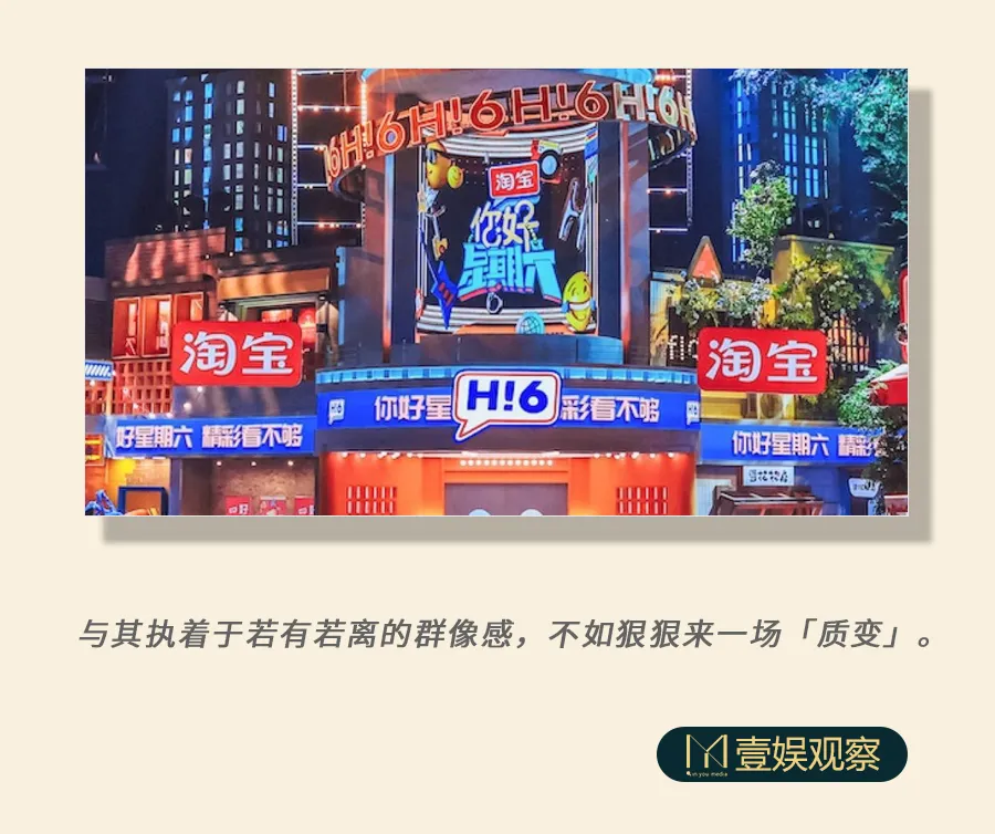 比如虚拟数字主持人加入节目、打造“好六街”进行场景铺设,更明显的是在常驻主持团人员的选择上。需要快速建立节目认知的《Hi6》在主持团配置上,开启了“流量时代”。