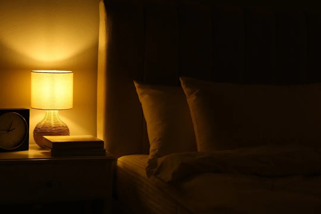 若夜晚极度怕黑,必须留灯,建议选择红色或橘黄色的低亮度小夜灯。可将其设置在更靠近地板、低于床面的位置,距离床头保持≥2米,也可用灯罩、布遮挡散光,避免光线直射眼睛。