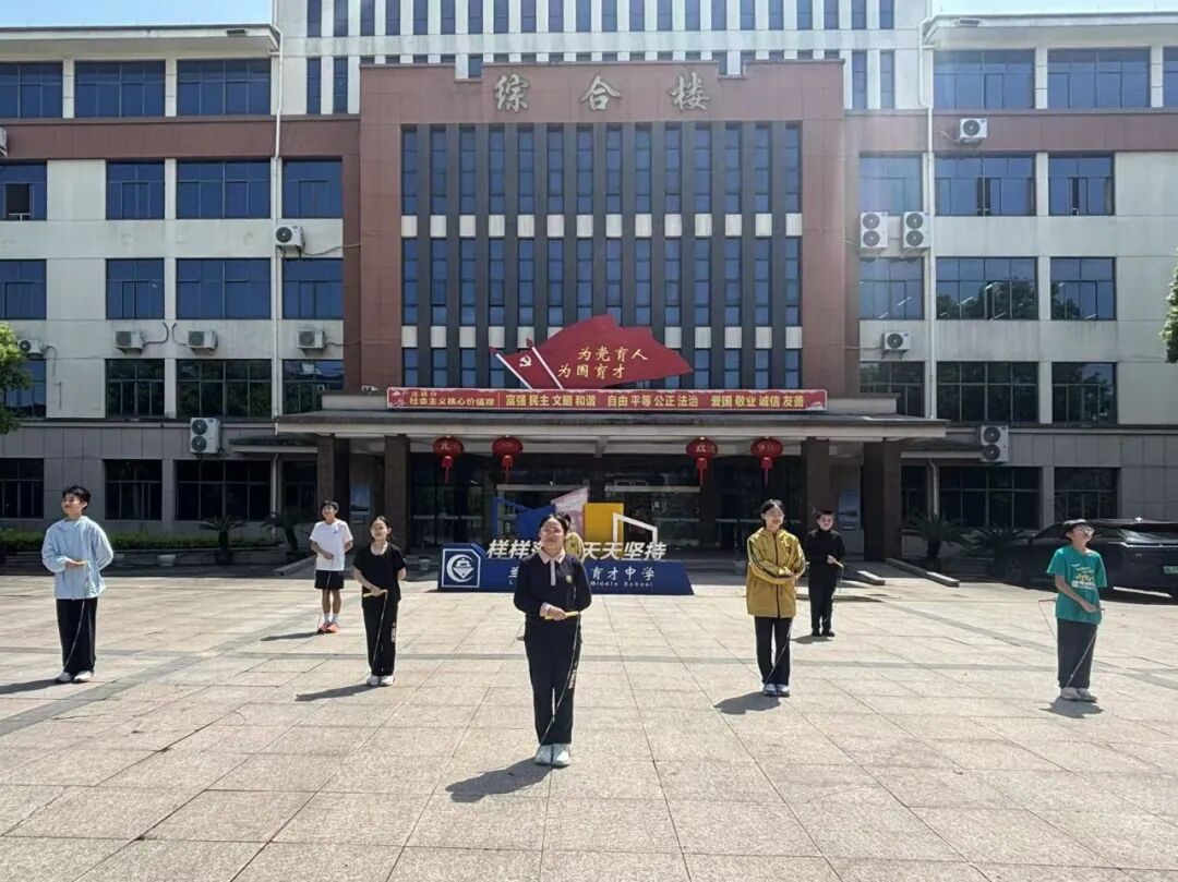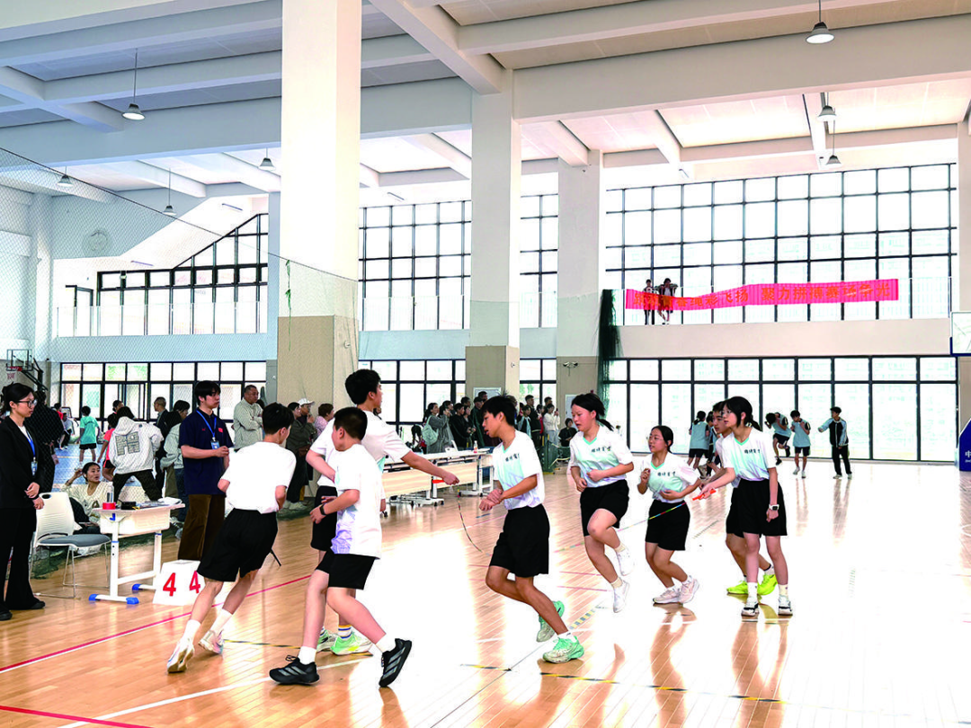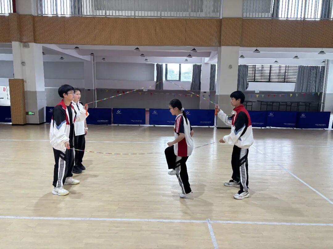 而在实验中学,花样跳绳不仅是学生课间运动项目,还被列入校本课程。喜爱跳绳的学生可选择花样跳绳社团课,老师会传授跳绳技巧、知识要点,进一步提升跳绳技术。“这次比赛,共有12名学生参加。学校将以各项赛事为平台,锻炼学生花样跳绳技能水平,让他们能走得更远。”学校校长施小明说。