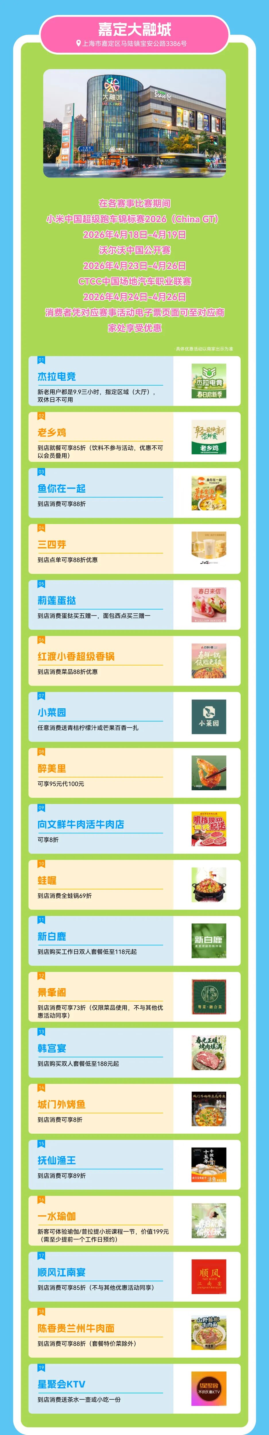 近期嘉定这三场赛事的票根联动优惠合集看这里!