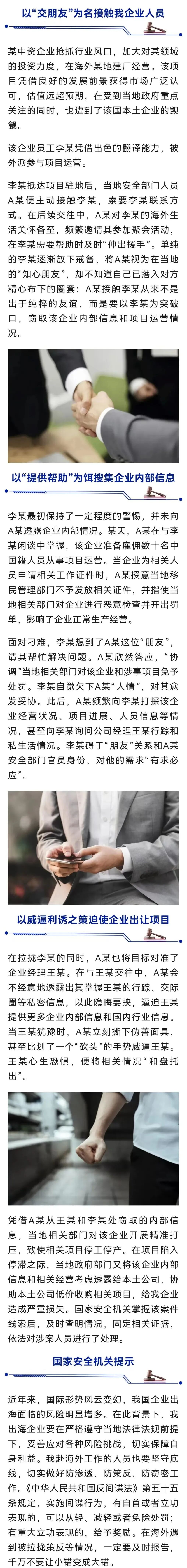 近期,国家安全机关侦破一起境外势力蓄意危害我国海外利益的案件,进一步印证了相关敌情。
