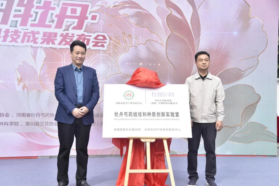 发布会上,洛阳市牡丹产业发展中心与中原美谷依莱恩(洛阳)生物科技有限公司正式签订牡丹新品种转让协议,并共同为共建的 “牡丹芍药组培和种质创新实验室” 揭牌,这是该中心首次与下游产业合作开展新品种转让,标志着洛阳牡丹育种成果真正实现市场化落地。