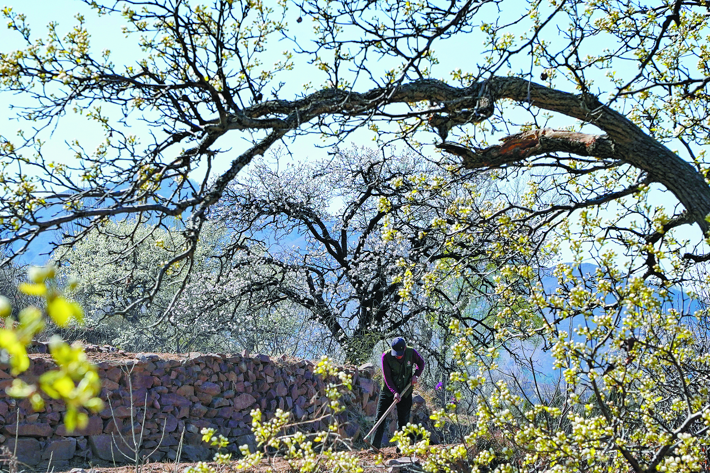青龙官场乡头道窝铺村村民在梨树下劳作。