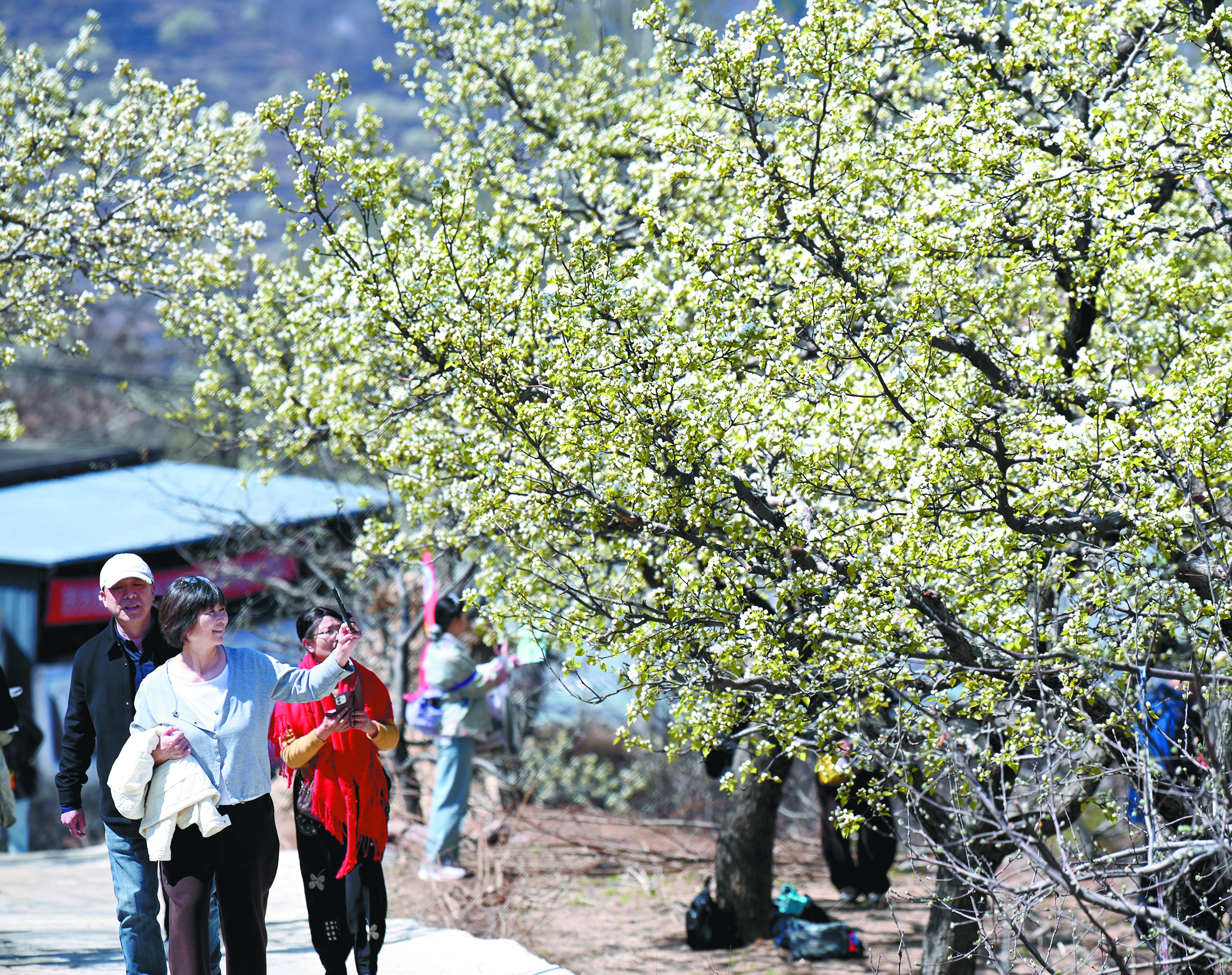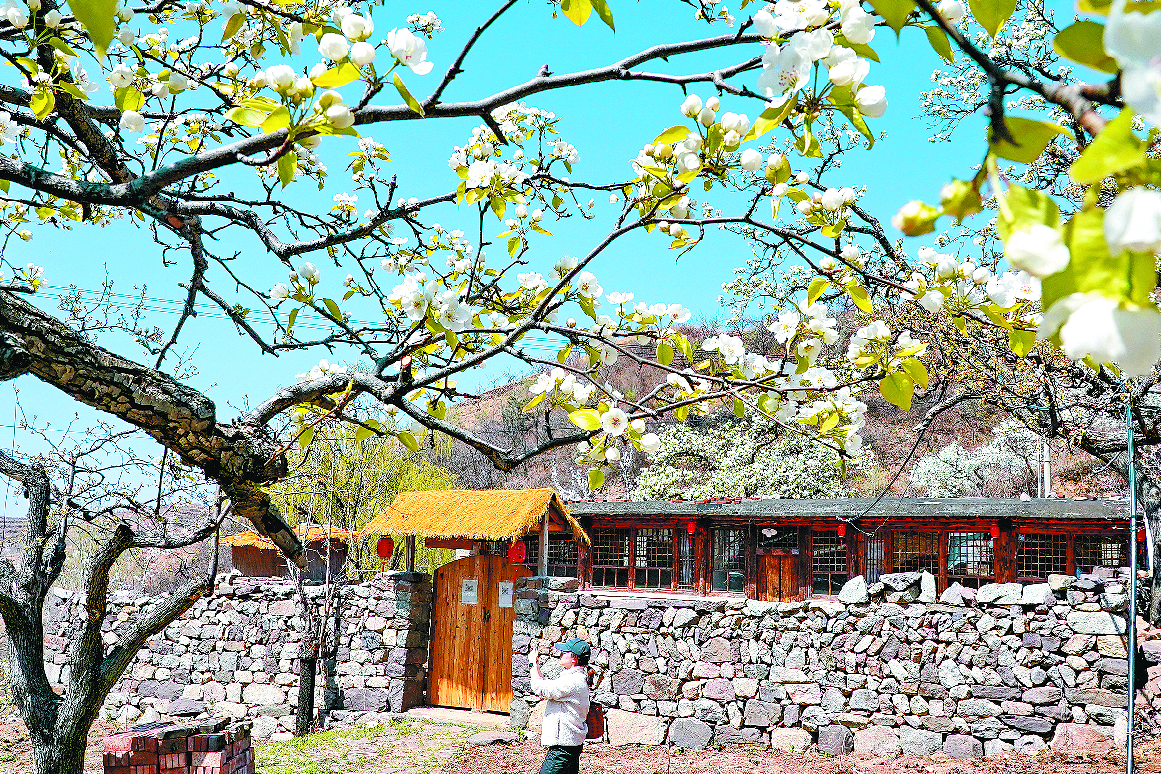 青龙满族自治县官场乡,1.6万亩盛果期梨园进入最佳观赏期,5000棵百年古梨树苍劲虬曲,漫山梨花如云似雪,绵延于梯田之上,与远处长城相映成景。4月11日,以“一城梨花开 春意满青龙”为主题的梨花节启幕,当地推出民俗展演、农特产品展销等活动。目前,官场乡有挂牌农家乐十余家,梨花节期间日均接待游客万余人次,村民在家门口实现就业增收,实现从“花事”到“花市”的蝶变。