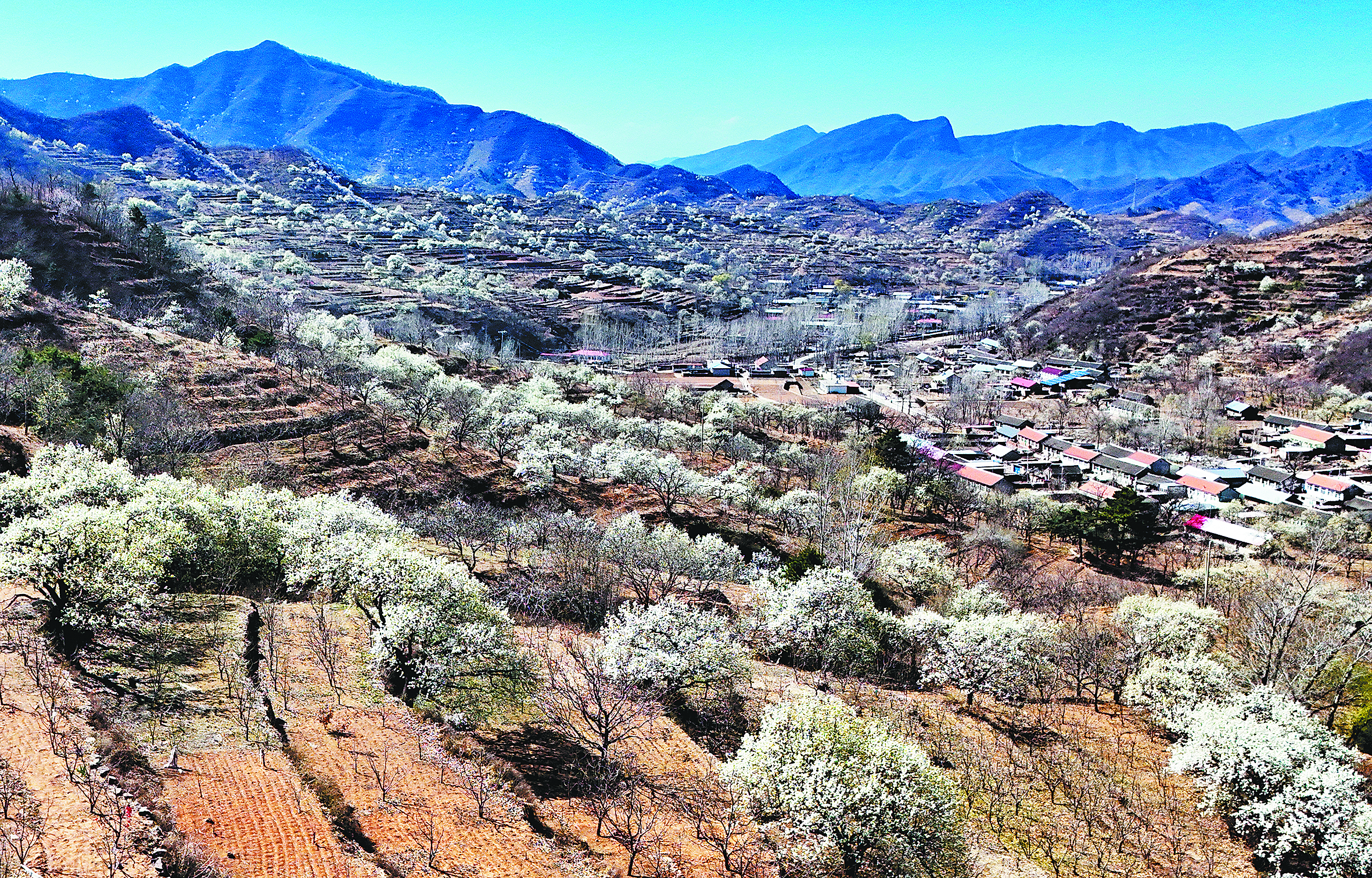 青龙官场乡头道窝铺村漫山梨花迎风绽放。