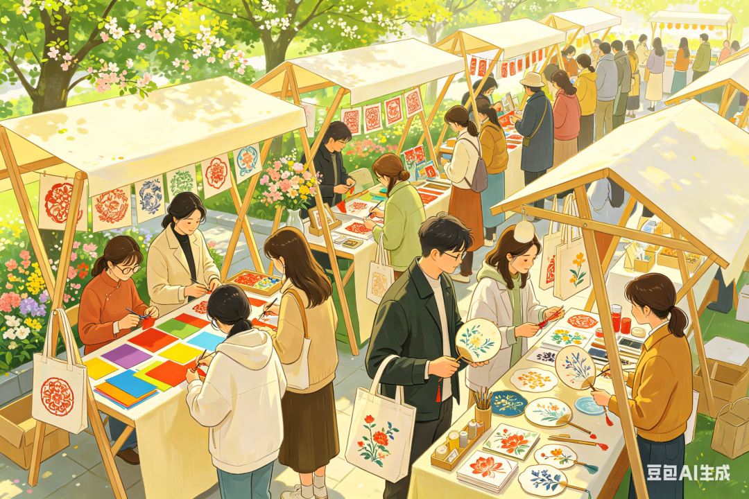 指尖万象:开展活字印刷、古法拓印、非遗剪纸、DIY书签、糖画、漆扇、手绘帆布包等互动