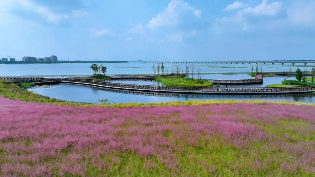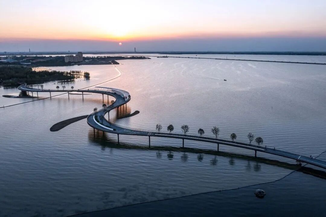 元荡慢行桥曲线造型超上镜。平整的骑行道一路串联生态美景,累了就去驿站歇脚,服务也很贴心。