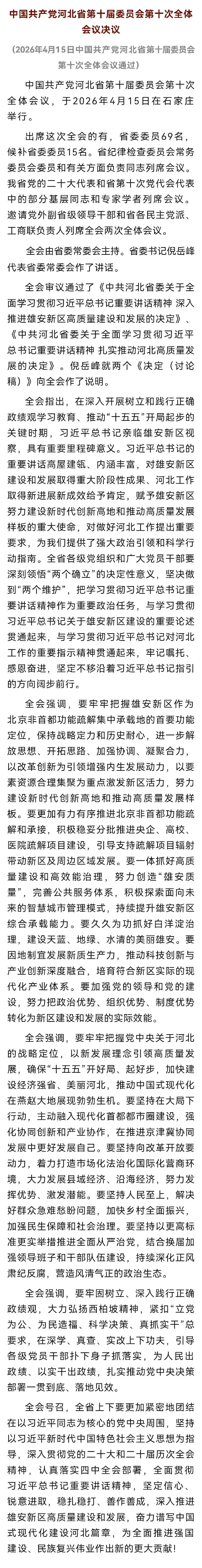 原标题:《中国共产党河北省第十届委员会第十次全体会议决议》