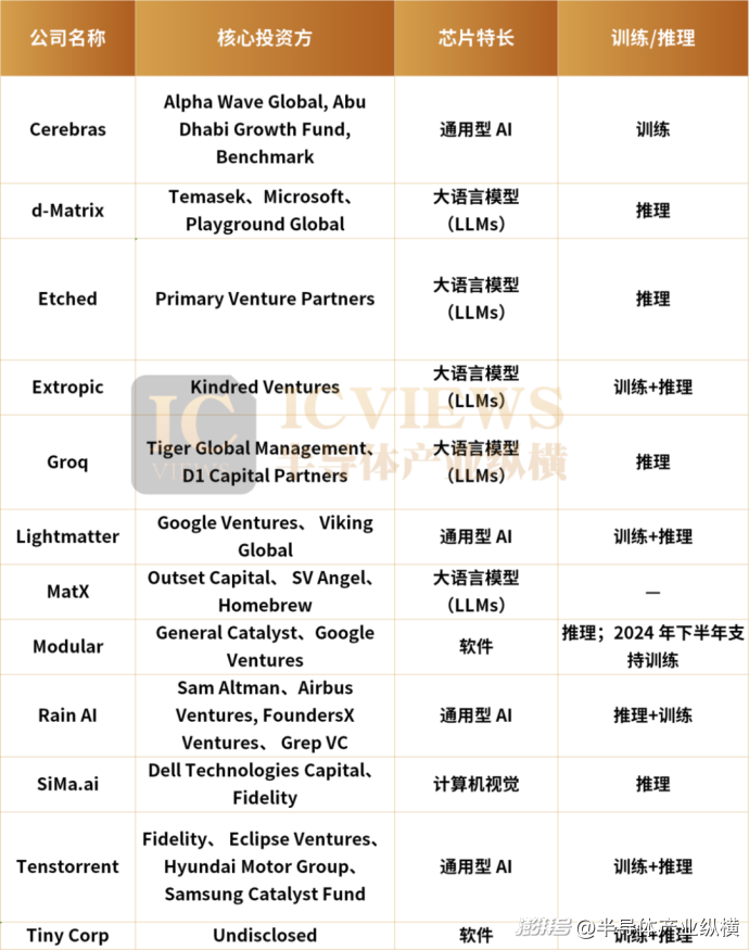 剩下的99家,是撑起赛道创新活力的初创公司。它们大多瞄准细分场景,专攻专用人工智能加速器,Tenstorrent、Cerebras、SambaNova、Groq、Esperanto 等玩家,曾凭借差异化技术路线收获不少关注。