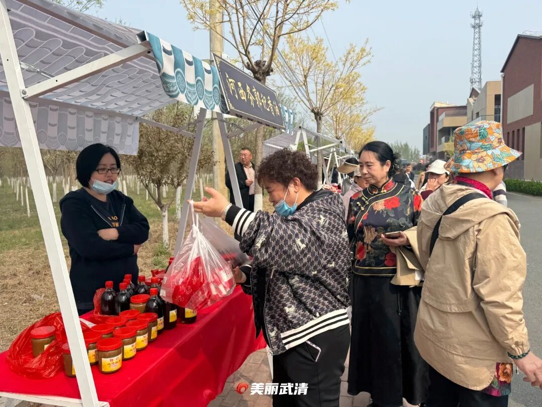“这骨雕真漂亮,给孩子带一个。”“这个水萝卜甜的,来两斤!”大家边逛边买,笑声不断。一位从廊坊过来的游客笑着说:“没想到这么热闹,带着孩子来玩,值了!”