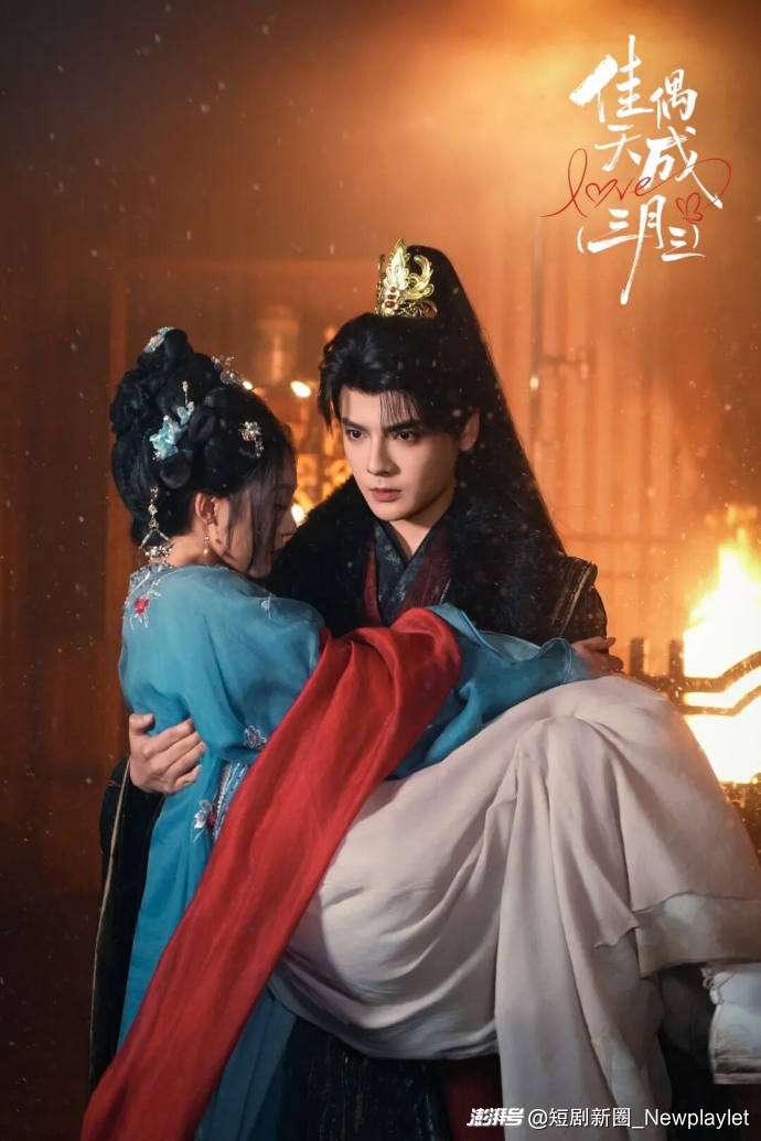 而且,普通穿越剧往往留下遗憾:要么留在古代,要么回归现代孤身一人。《佳偶天成(三月三)》采用古今闭环结构:古代揭穿阴谋→被害穿回现代→救命恩人即是古代夫君→双方最后从相互嫌弃到生死相许的圆满结局。两世情缘,宿命相连,反差甜宠,逻辑自洽,情绪完整,在短剧里极为少见。