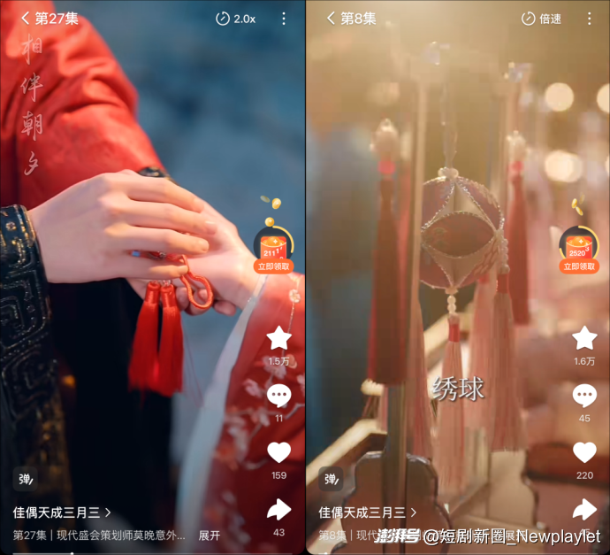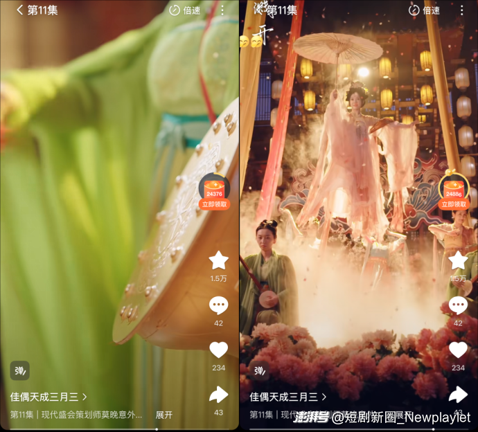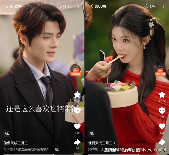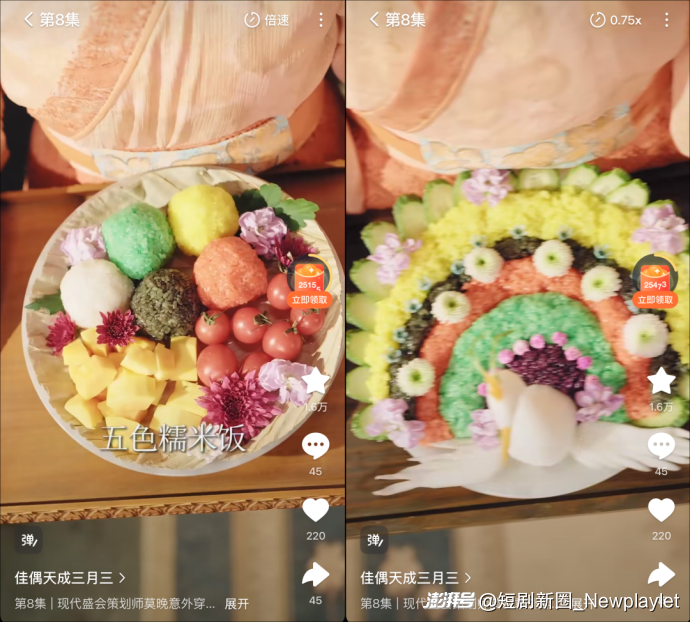 当然,除了融入非遗底色以外,《佳偶天成(三月三)》在短剧创作上也进行了创新。