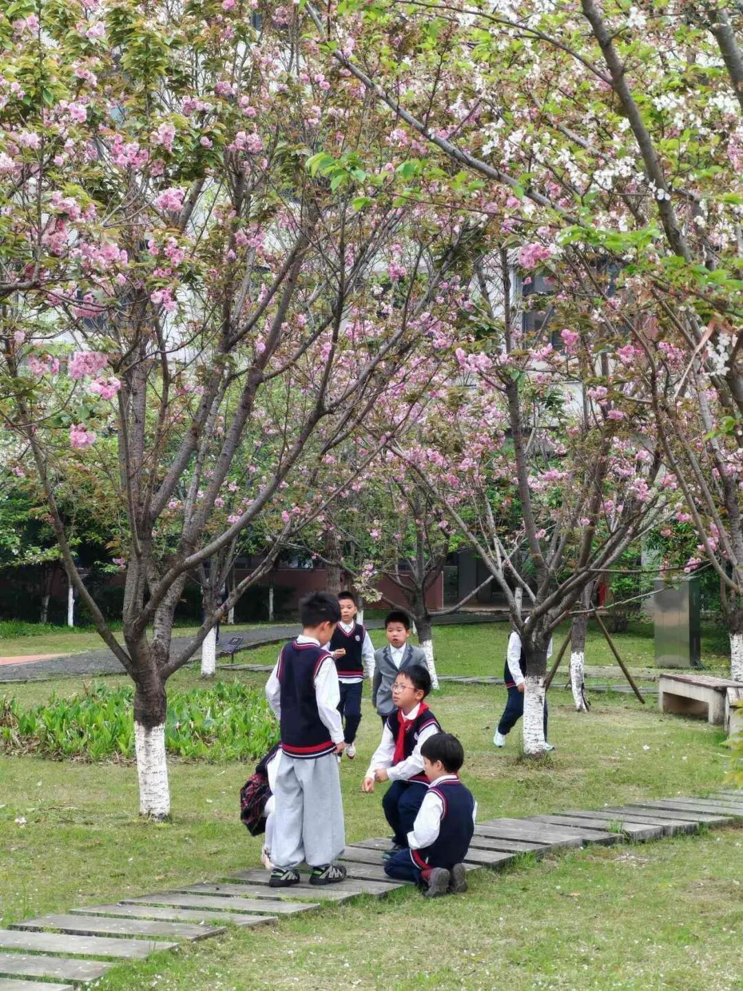 整洁的校园被春色裹满