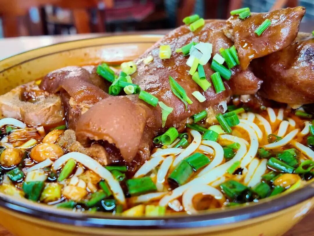 扎西蹄花米线:源自威信扎西的特色美食,适配红色文化之旅,软糯Q弹的米线搭配炖得酥烂脱骨的蹄花,汤汁浓郁鲜香,暖心又暖胃,一口解锁红色圣地的地道烟火气。