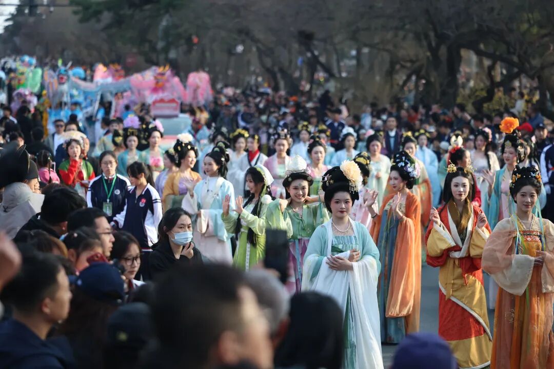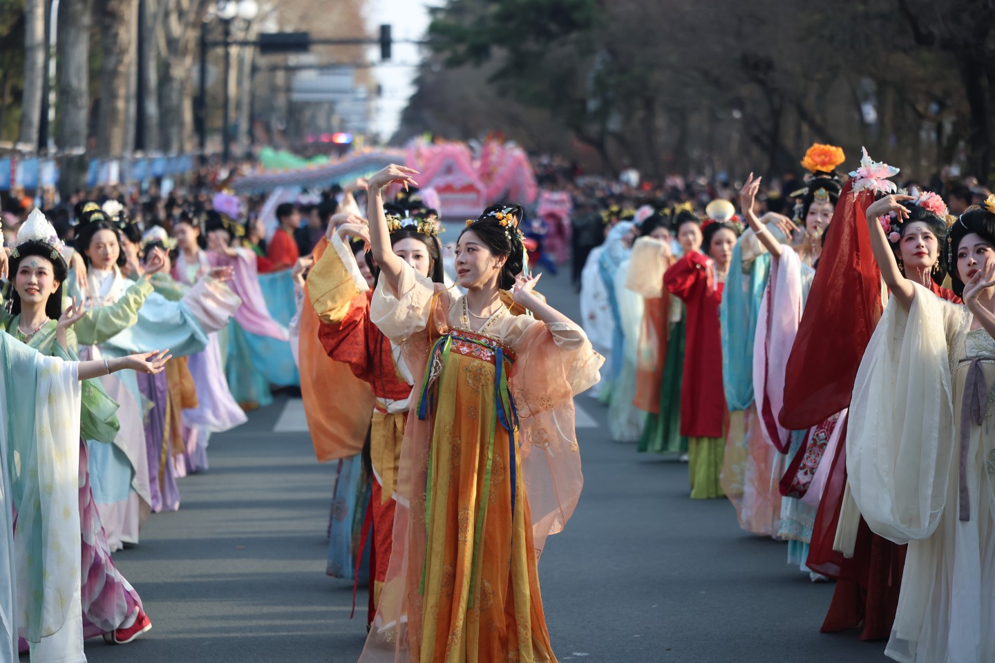 由锦绣芳华方队、龙腾狮跃方队等组建的“华服巡演”活动持续开展,市民与游客在移步换景间感受华服之美。来自全国各地的传统文化爱好者齐聚长春,以华服为媒,共襄霓裳盛会,以青春之力,赓续中华文脉。