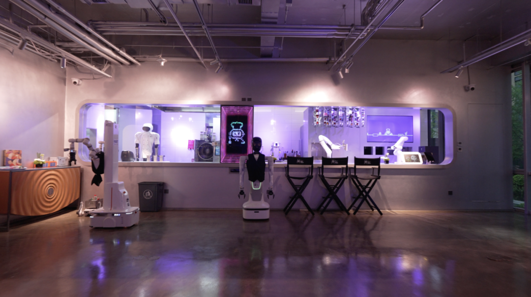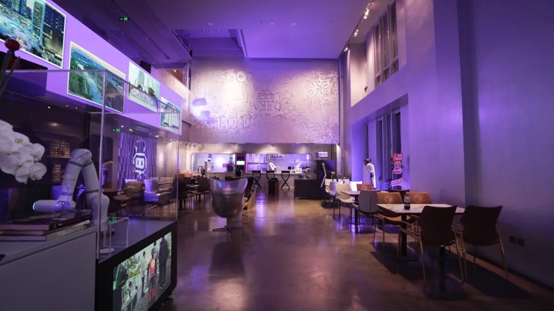 机器人共生空间通过光影与数字影像,呈现未来人机共处的场景。休闲与亲子场景则打造沉浸式机器人体验,形成全链路、高互动的机器人餐饮服务体系。