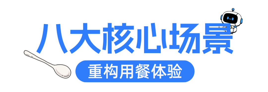 机器人焰究所2.0构建了入口迎宾、前台点餐、厨房烹饪、用餐配送、用餐氛围、餐后清洁、休闲互动、亲子体验八大核心机器人应用场景,让机器人服务你在餐厅的每一刻。