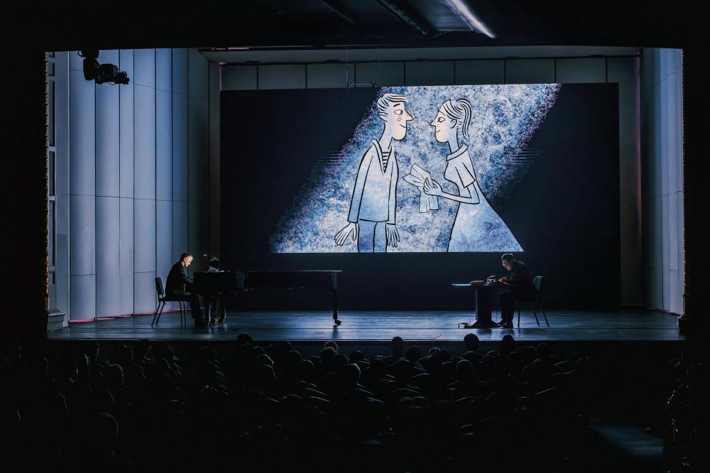 4月17日-18日,两场“声绘动画”音乐会登陆上海音乐厅,音乐家在台上演出,舞台一侧,法国动画大师格里高利·庞在埋头作画。