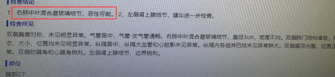 2016年6月,张先生在体检中发现了右肺中叶一个混合磨玻璃结节。