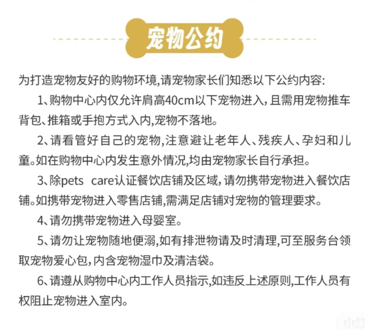 购物中心内仅允许肩高低于40厘米的宠物进入