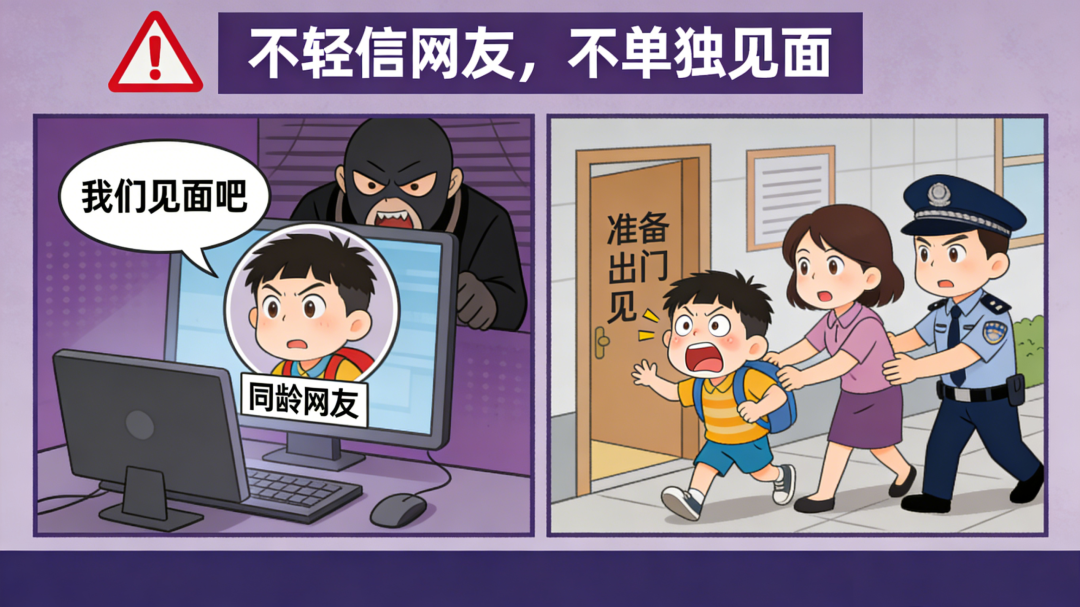风险提示:不法分子常伪装成同龄人或“知心朋友”,骗取信任后实施网络诈骗、隔空猥亵甚至线下侵害。