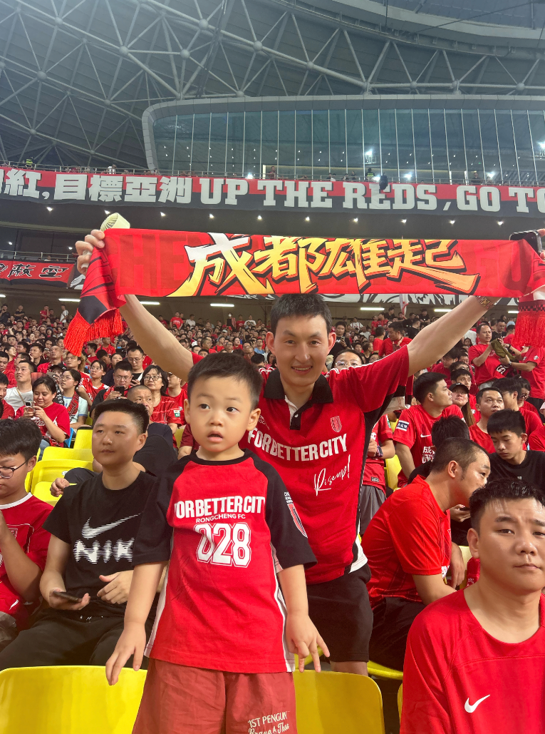 今年,点点加入了成都球迷远征军的行列,黄先生说:“儿子下半年就要上幼儿园了,所以在还没有入学时带他多走两个客场。”而点点最喜欢的蓉城球迷歌曲也是《征途漫漫》,“前方征途漫漫,永远不畏艰难。南看台燃烧红色的火焰,共同坚定向前!”当点点奶声奶气地唱起这首战歌时,你会感受到“金牌球市”的精神内核会在一代又一代人中传承、延续。