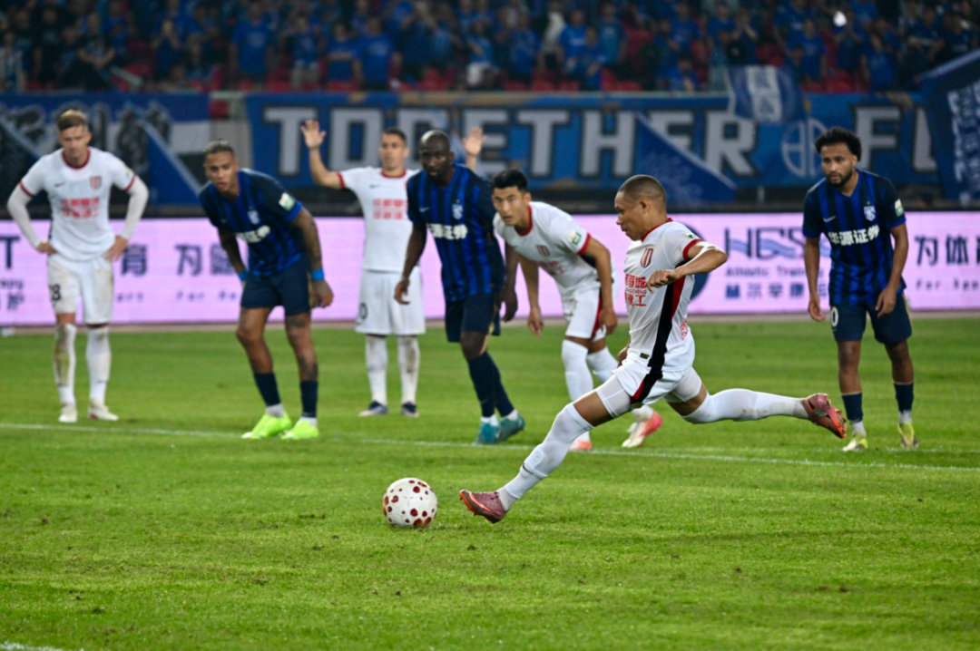 下半场易边再战,第54分钟杨明洋右路传中,武汉三镇后卫王康门前解围踢在自家大门的门柱上。险些自摆乌龙。虽然这次王康没有给成都蓉城送上大礼,但第67分钟他又以一次鲁莽犯规送给成都蓉城点球——贺一然中场断球后交给罗慕洛,后者挑传禁区内,迅速插上的胡荷韬被王康拉倒,主裁判张超果断判罚点球!韦林顿·席尔瓦操刀主罚命中,为成都蓉城打破僵局!这也是席尔瓦本赛季的第五个进球。