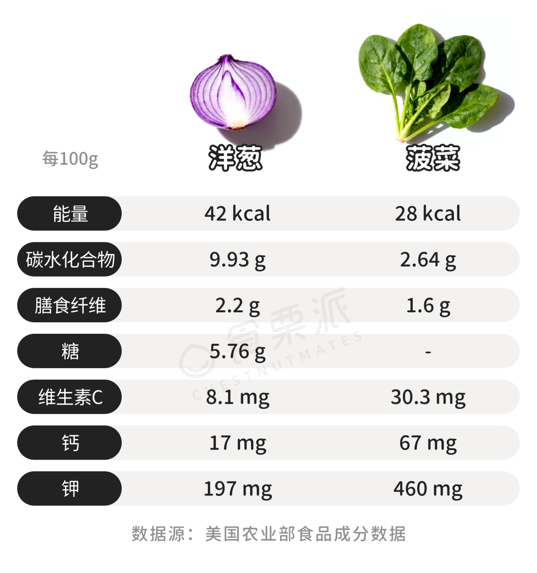 菠菜、生菜等叶菜,碳水化合物含量通常在2-3%左右;洋葱有9-10%左右,不仅用于自身生长,也让洋葱具有天然的甜味。