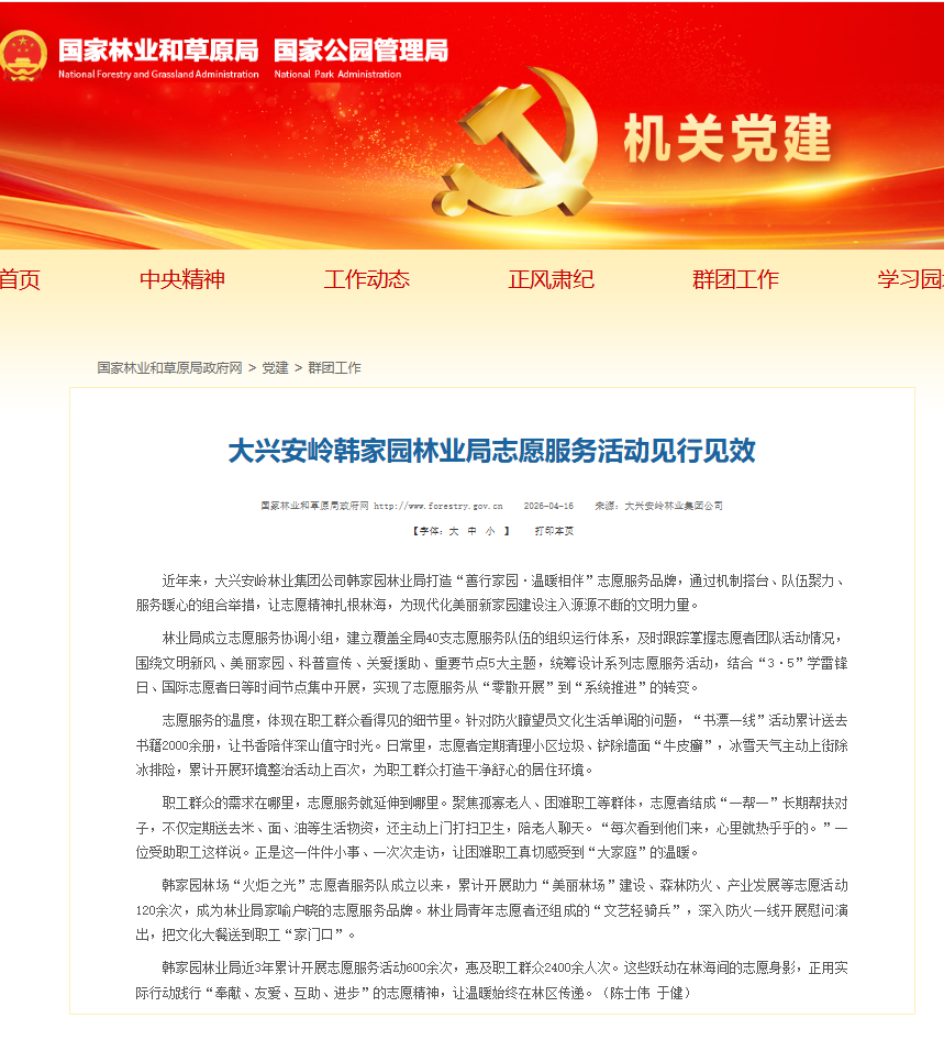 原标题:《【媒体关注】大兴安岭韩家园林业局志愿服务活动见行见效》