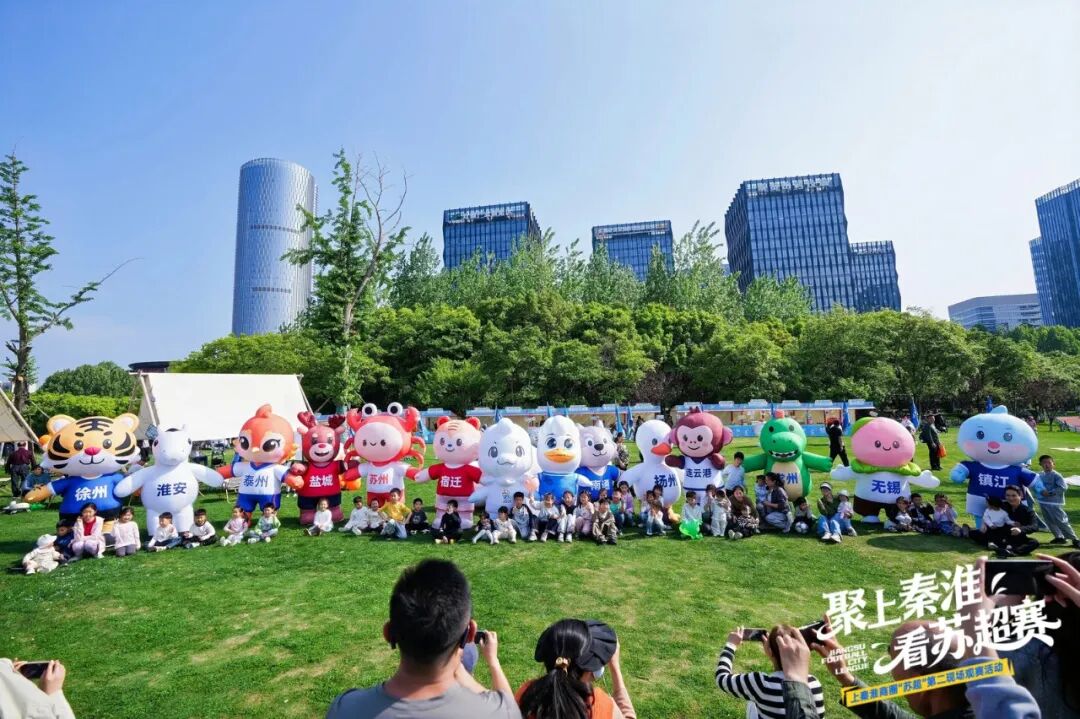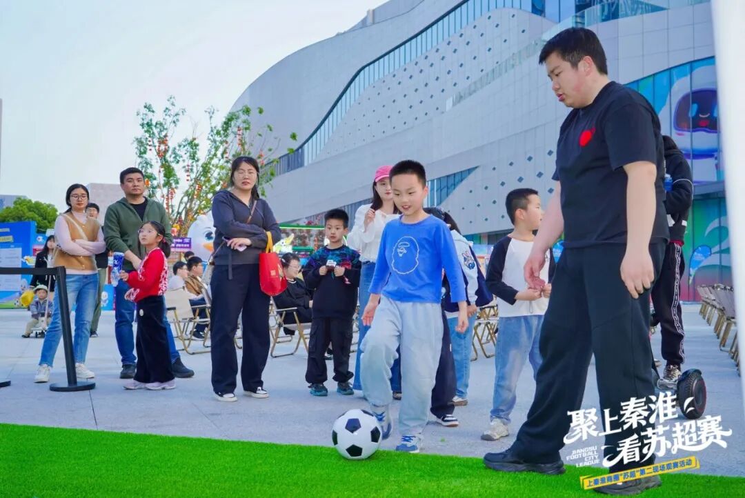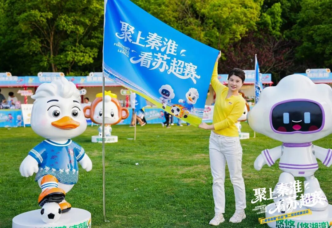 这次,上秦淮商圈共设置了悠湖湾购物广场、悠湖公园草坪两个观赛点。在悠湖公园草坪区域,市民们还能与云朵秋千、“苏嘟嘟”家族、悠悠、莱斯鸭等系列展陈拍照打卡;少儿足球互动区域更是深受孩子们的喜爱。