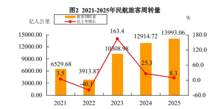 2025年是“十四五”规划收官之年,是中国式现代化进程中具有重要意义的一年。面对国内外形势深刻复杂变化,民航全行业认真贯彻落实党中央、国务院决策部署,完整准确全面贯彻新发展理念,坚持稳中求进工作总基调,积极服务构建新发展格局,有效应对外部冲击挑战,总体保持了稳中有进、稳中向好的发展态势,民航高质量发展再上新台阶,交通强国建设民航篇章迈出坚实步伐,民航发展主要目标任务顺利完成,“十四五”圆满收官。最新发布的《2025年民航行业发展统计公报》充分展示了过去一年民航业发展成果。