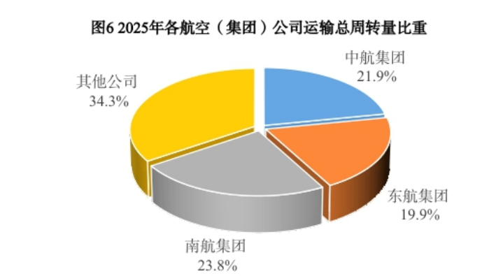 2025年,中航集团完成飞行小时304.77万小时,比上年增长3.1%;完成运输总周转量360.02亿吨公里,比上年增长9.0%;完成旅客运输量15733.11万人次,比上年增长3.4%;完成货邮运输量207.18万吨,比上年增长11.4%。