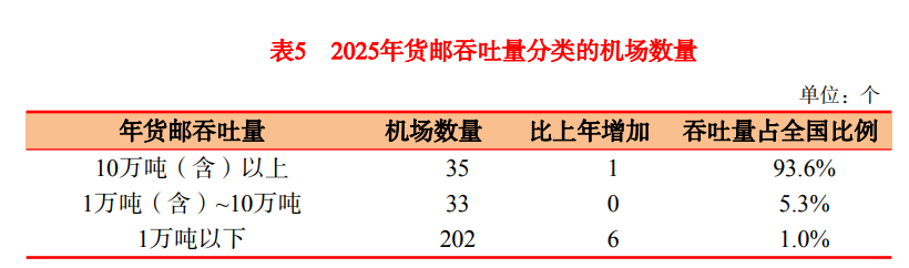 2025年,年货邮吞吐量1万吨以上的运输机场68个,其中,北京、上海和广州三大城市机场货邮吞吐量占全部境内机场货邮吞吐量的40.7%,比上年下降1.0个百分点。
