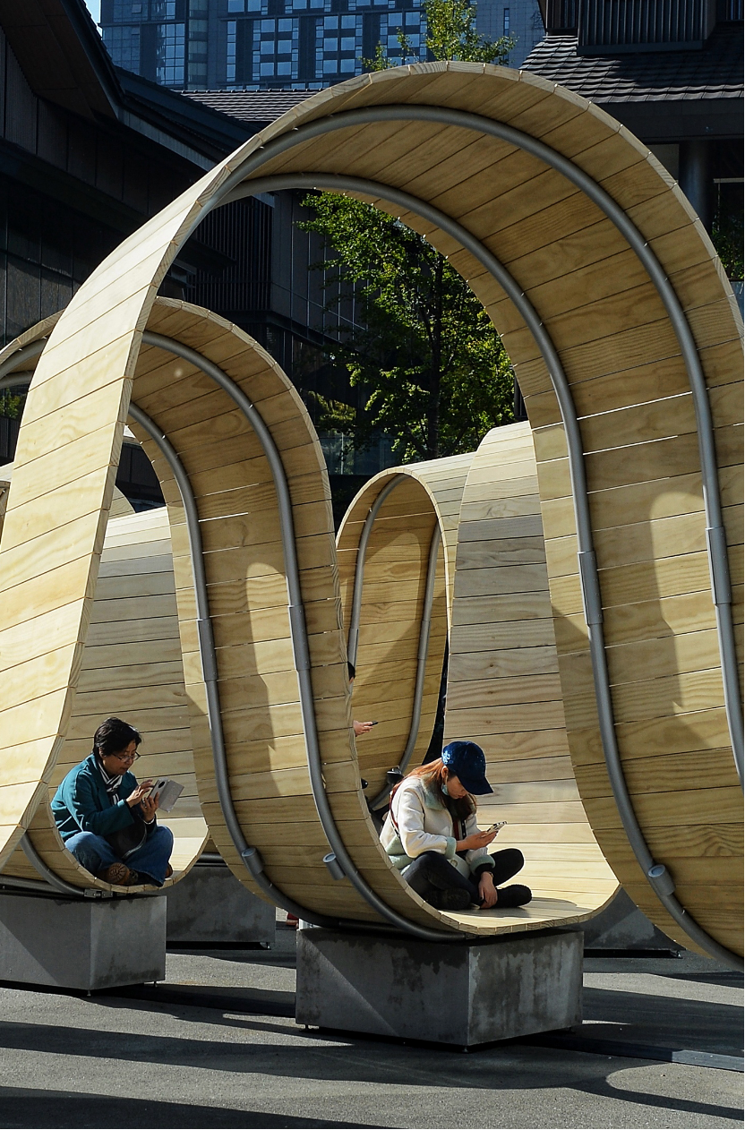 试问谁看到这样的场景不想上前入座?而近年来,邀请人坐下的公共艺术也正在长进商业空间。2020年,成都太古里曾做了个非常出圈的大型艺术装置,名字就叫“Please Be Seated 请就座”。它的主体呈波浪形态,往下凹的地方,恰好就能让人坐下。